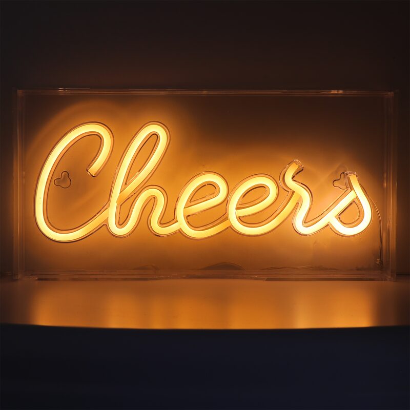 Pour un rendu plus sobre, plus élégant et épuré, les néons blancs sont une autre excellente option. Le néon CHEERS se mariera totalement à un décor industriel agrémenté d'un mur en briques et sera parfait pour accentuer l’effet visuel. Si vous choisissez une décoration plus rétro, le jaune du néon PINTE ou les motifs vifs du néon COSMOPOLITAIN rehausseront instantanément l'atmosphère de votre cuisine.