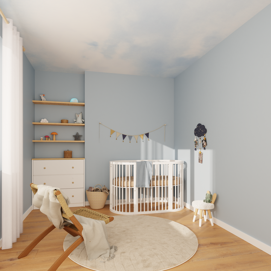 Dans une pièce basse, les teintes claires ou légèrement satinées permettent de refléter la lumière et d’éviter l’effet écrasant. Un bleu ciel dans une chambre d'enfant sera parfait.